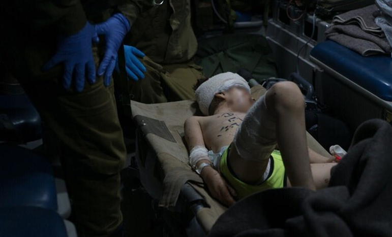 A wounded Syrian child who crossed the border